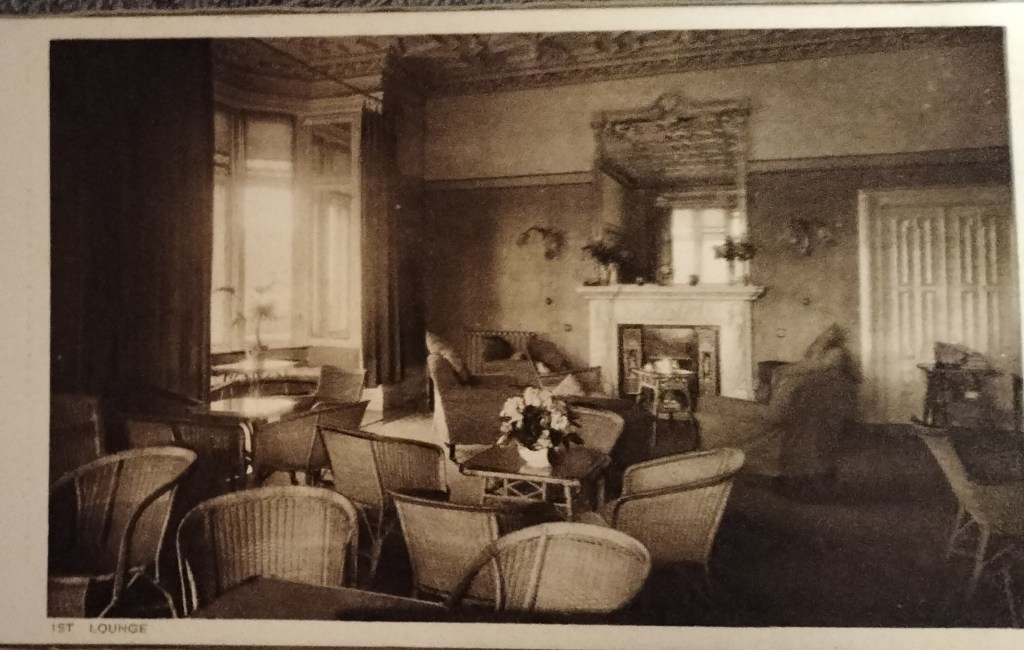 I shall share below each postcard in the album (only one postcard was actually sent, that showing the terrace) and then what I actually find most fascinating in the album, the tariff list for the Shandon Hydro Hotel. Having said that, I do enjoy seeing the rooms where the subjects of so many of my blog posts actually took place.